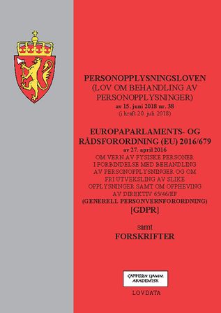 Personopplysningsloven : (lov om behandling av personopplysninger) av 15. juni 2018 nr. 38 ; Europaparlaments- og rådsforordning (EU) 2016/679 : av 27. april 2016 om vern av fysiske personer i forbindelse med behandling av personopplysninger og om fri utveksling av slike opplysninger samt om oppheving av direktiv 65/46/EF : (generell personvernforordning) [GDPR] : samt forskrifter